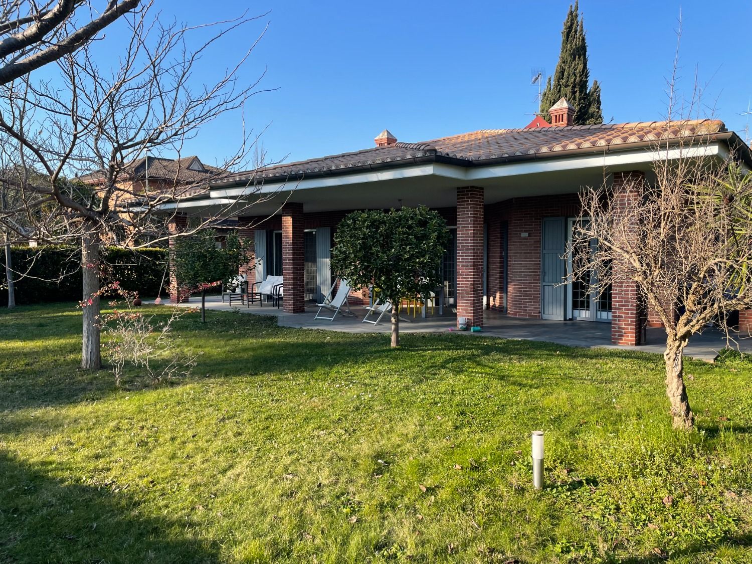 Villa esclusiva in vendita a Latina, zona via dell’Agora, disposta tutta su un livello oltre a rustico e garage e composta al piano terra da: ingresso, grande salone con camino e veranda sul giardino, grande cucina, quattro camere da letto, 3 bagni e lavanderia ed al piano interrato da: rustico con camino, cucina, stanza polivalente, bagno, garage per 5 macchine, grande cantina e locali tecnici. Ampio giardino.