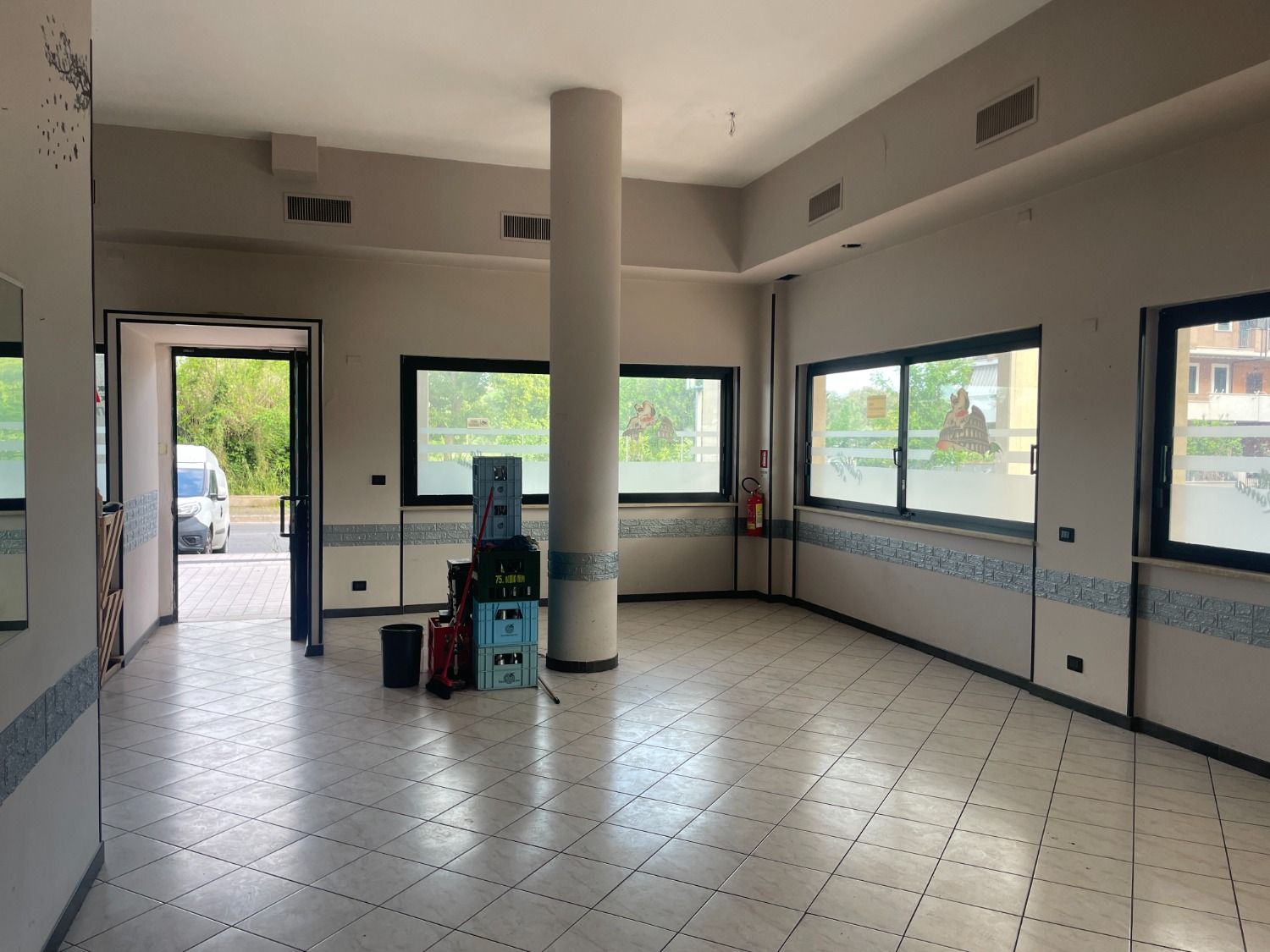 Locale commerciale in affitto a Latina, viale Giulio Cesare angolo via Oslavia, 145 mq con circa 14 mq di vetrine fronte strada. Già adibito a pizzeria con forno a legna ma ideale a qualsiasi tipo di attività commerciale o studio professionale. Già dotato di servizi igienici a norma, anche per il personale. Affitto non soggetto a IVA.
