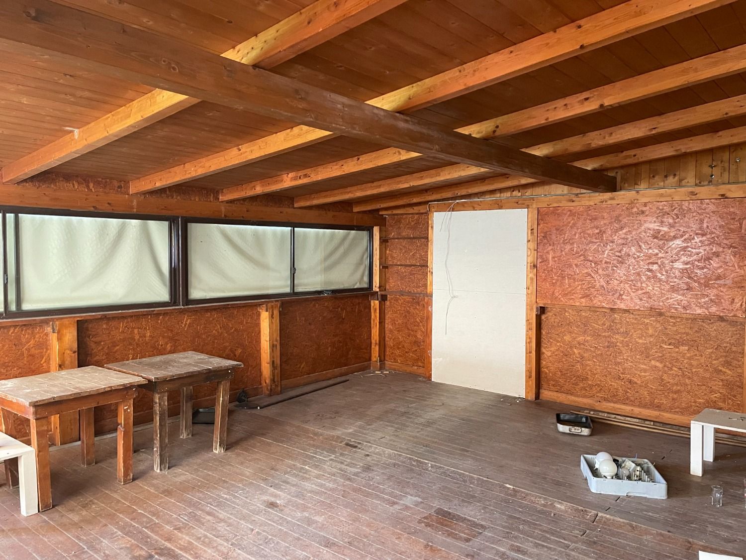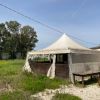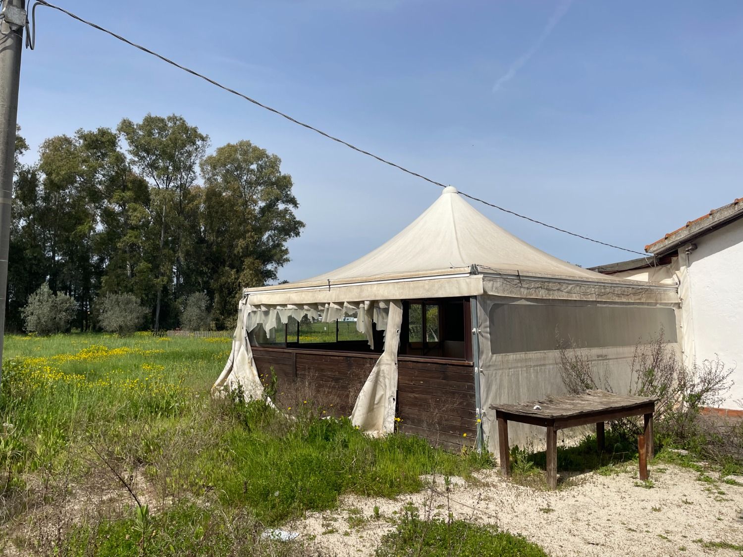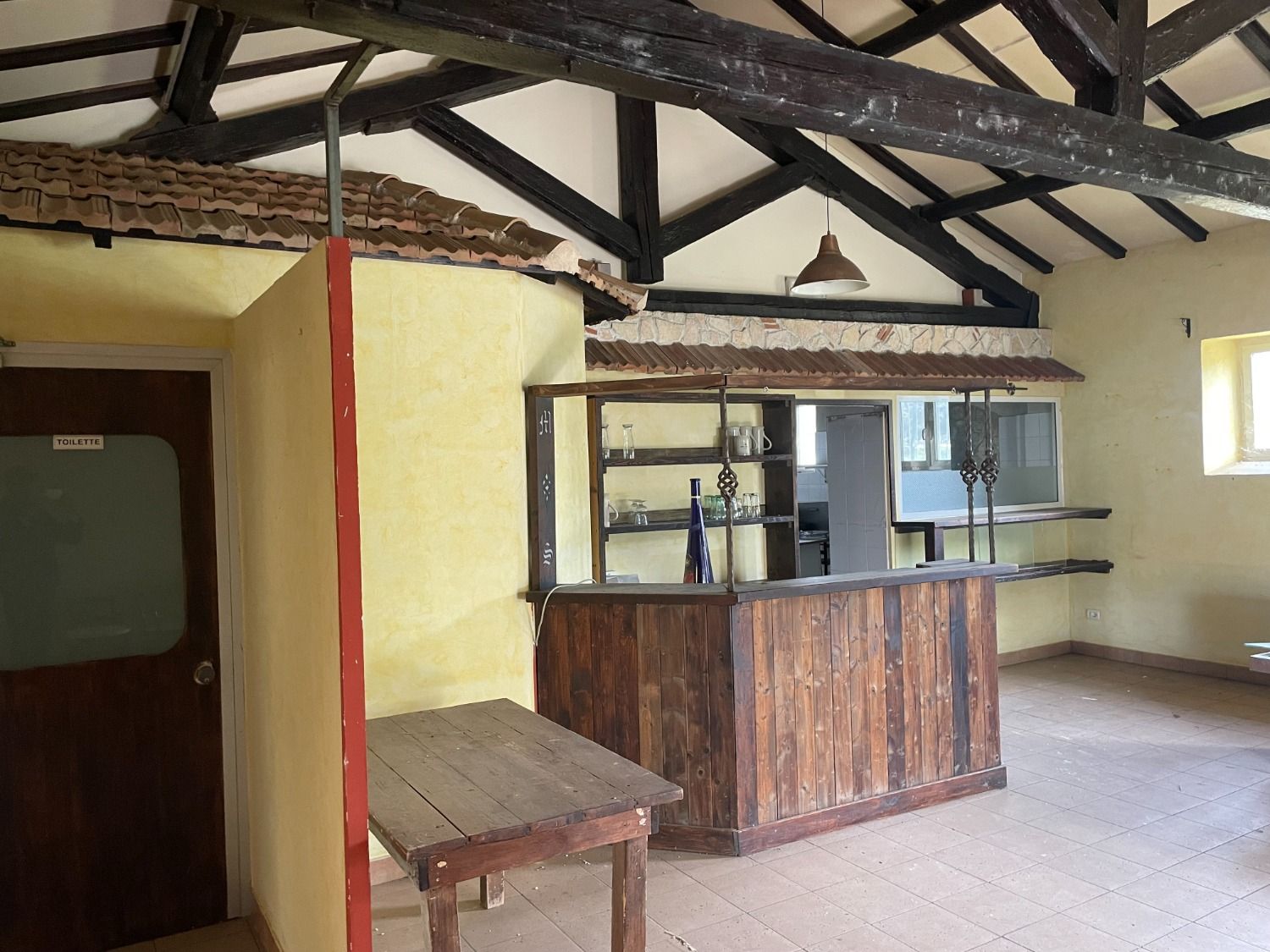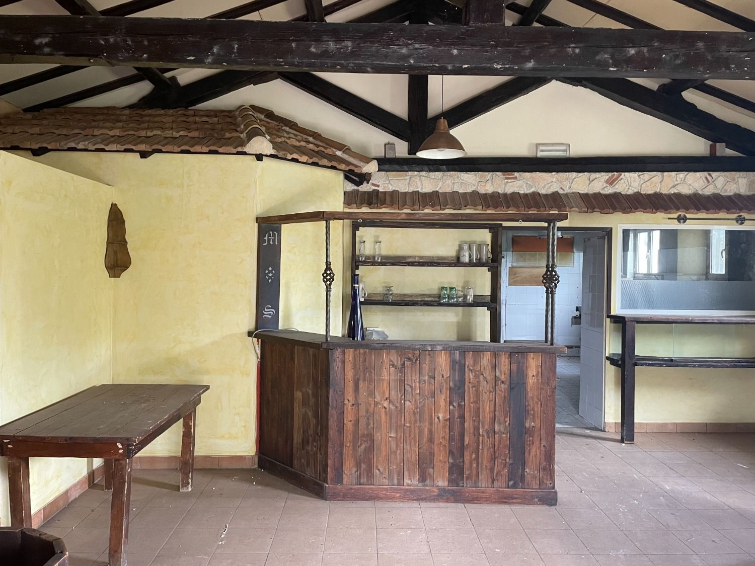 Attualmente è diviso in un’ampia zona cucina, dotata di canna fumaria e di forno a legna esterno. Annesse alla cucina ci sono la zona lavaggi e la zona spogliatoi e servizi per il personale. Le sale per gli ospiti sono due, una ricavata nell’ex stalla del casale e l’altra in una tettoia esterna sanata. Un gazebo con struttura in ferro e copertura a telone, di circa 30 mq, garantisce altri posti a sedere.