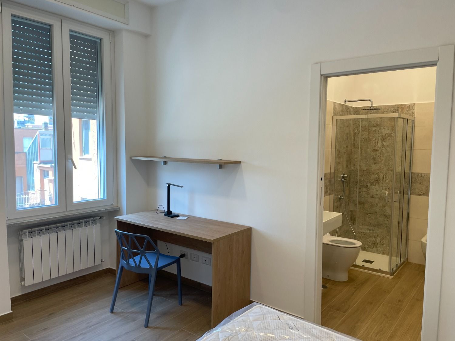Stanza con bagno interno privato in affitto a Latina, nuova e mai abitata, in appartamento di 3 camere da letto ciascuna con bagno privato. Arredata con letto, armadio, scrivania, sedia e comodino. Dotata di condizionatore, collegamento internet con cavo e wi-fi, bagno con doccia. Ampia zona giorno comune, completamente arredata a fornita di una base di pentole e stoviglie. A pochi passi da tutte le facoltà universitarie e ben collegata con i mezzi pubblici. Nel prezzo indicato sono compresi internet e condominio.