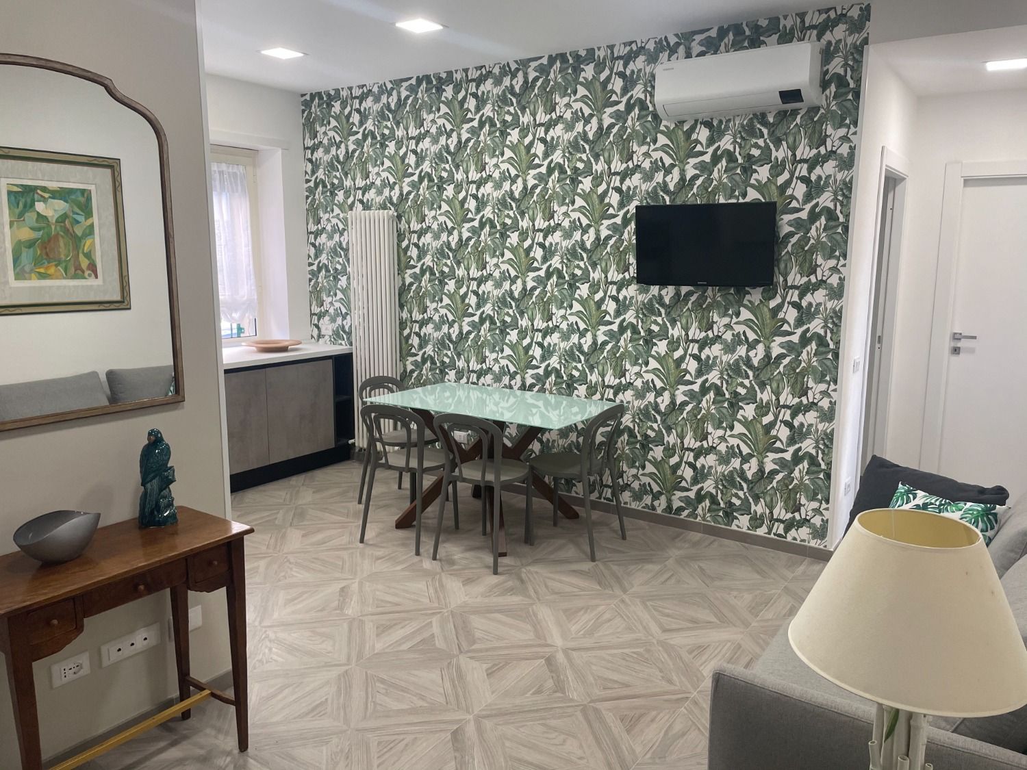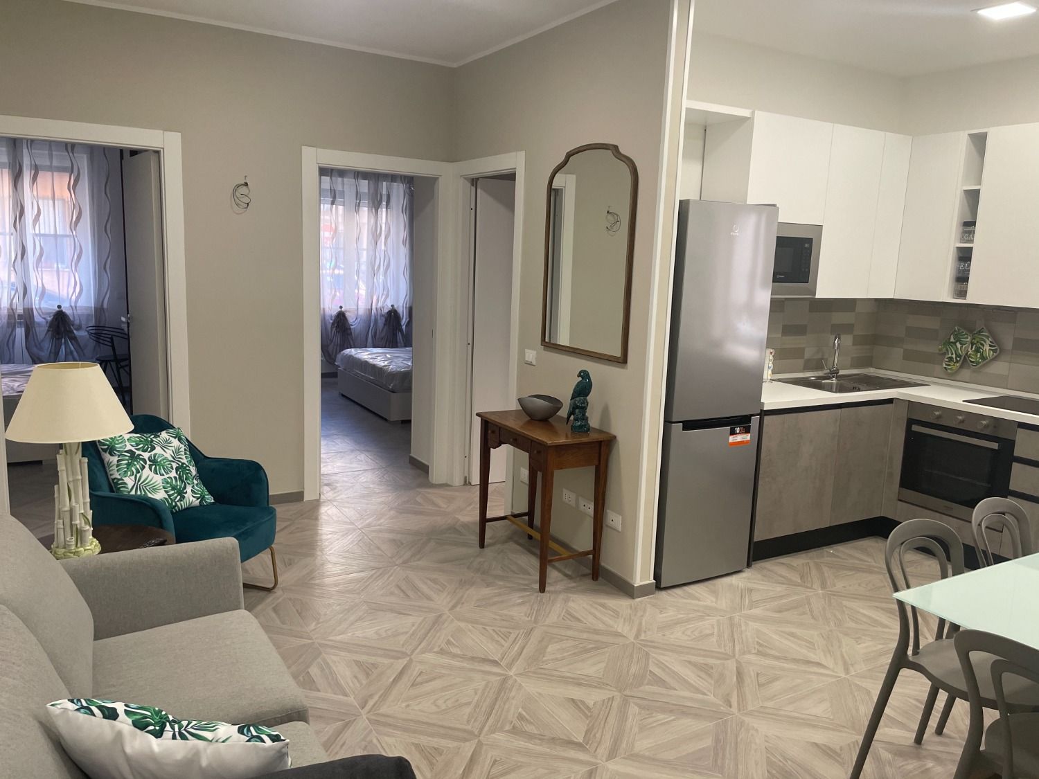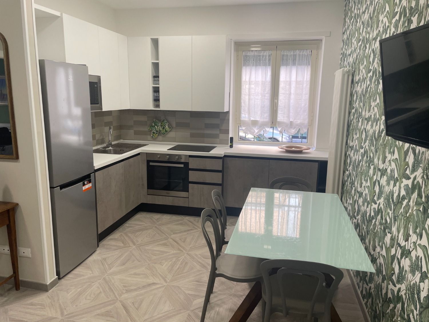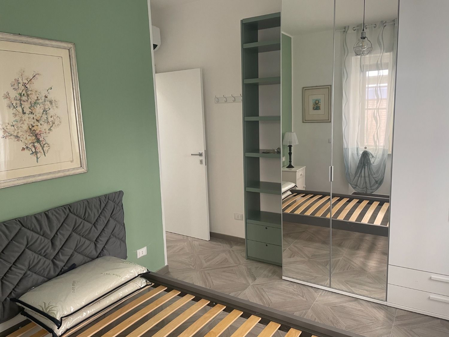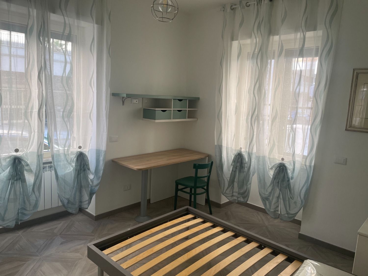 Stanza in affitto a Latina centro, via Duca del Mare. Affittiamo stanza arredata in appartamento ristrutturato, posto al piano rialzato e composto da: tre stanze da letto, soggiorno con angolo cottura, due bagni. La stanza è arredata con letto ad una piazza e mezza, armadio, scrivania, sedia, libreria, comodini ed è dotata di aria condizionata. La zona giorno comune è arredata con angolo cottura completo di forno a microonde e lavastoviglie, tavolo e sedie, divano e TV. Il tutto completamente nuovo e di ottima qualità. Nel prezzo indicato sono compresi condominio e wi-fi.