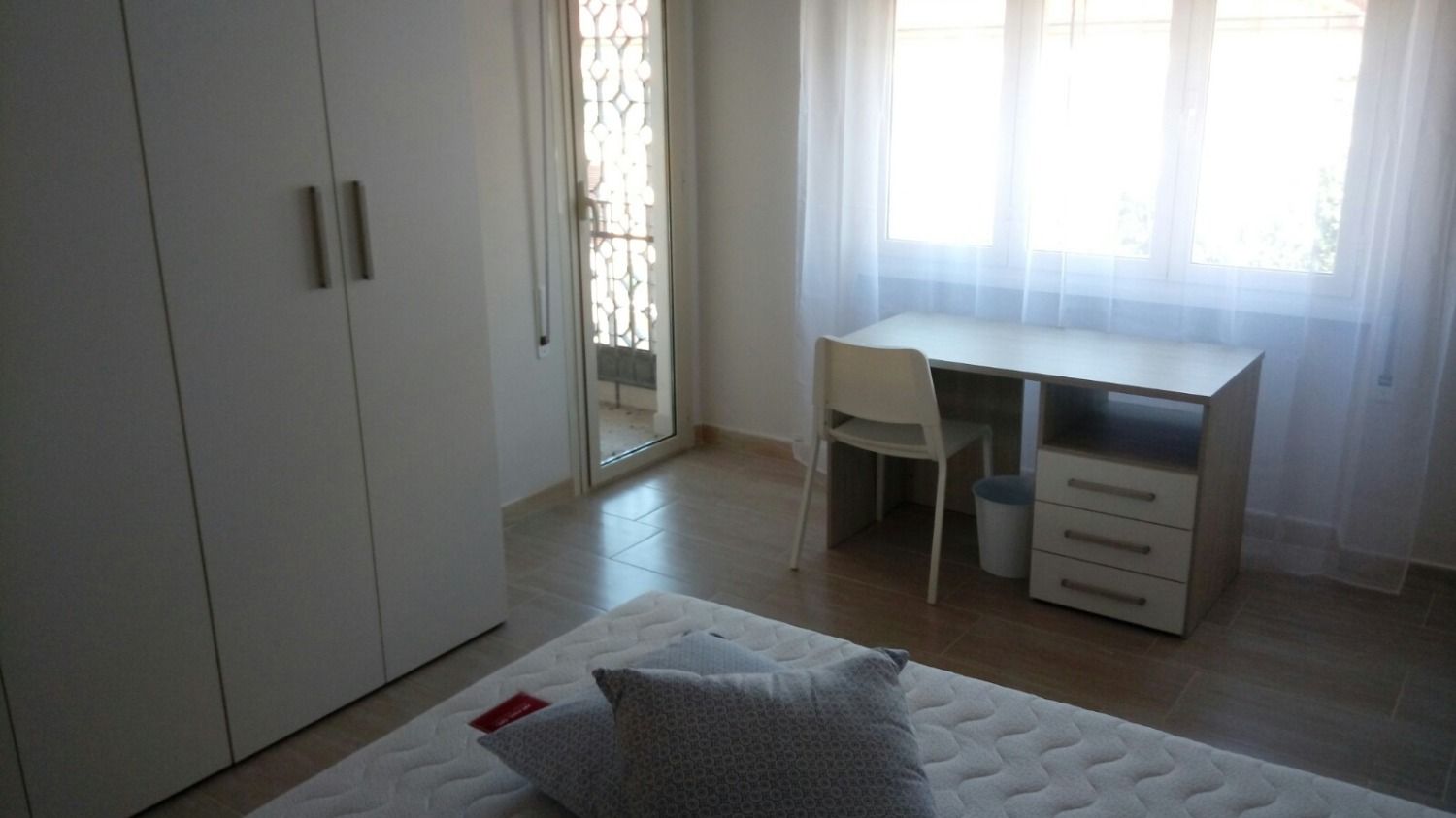 Stanza matrimoniale con balcone in affitto a Latina centro, per studentesse o lavoratrici, a pochi minuti a piedi dall’università, in appartamento composto da tre stanze, sala, cucina, bagno, balcone e ripostiglio. Appartamento completamente ristrutturato ed arredato a nuovo. La stanza è arredata con letto matrimoniale contenitore, armadio a due ante, scrivania, sedia e grande libreria. Spese condominiali comprese nel presso indicato.