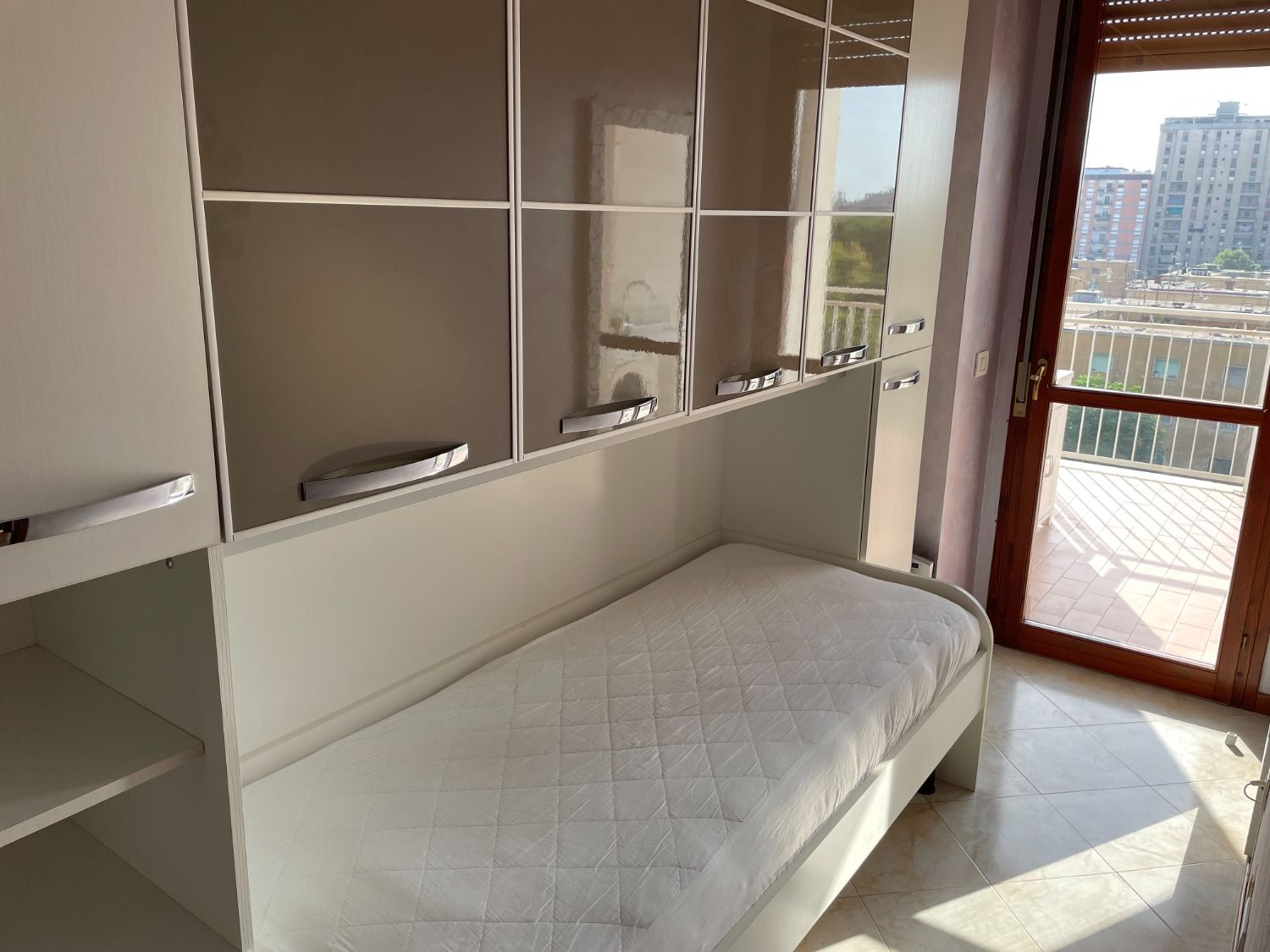 Appartamento in affitto arredato a Latina, due camere e terrazzo. Affittiamo appartamento arredato a Latina, zona semicentrale, posto al piano quinto di una palazzina di recente costruzione e composto da: soggiorno con angolo cottura, camera da letto matrimoniale, cameretta uso studio, bagno, ampio terrazzo a livello e garage al piano interrato. Zona ben servita e collegata, il centro città dista solo pochi minuti a piedi.