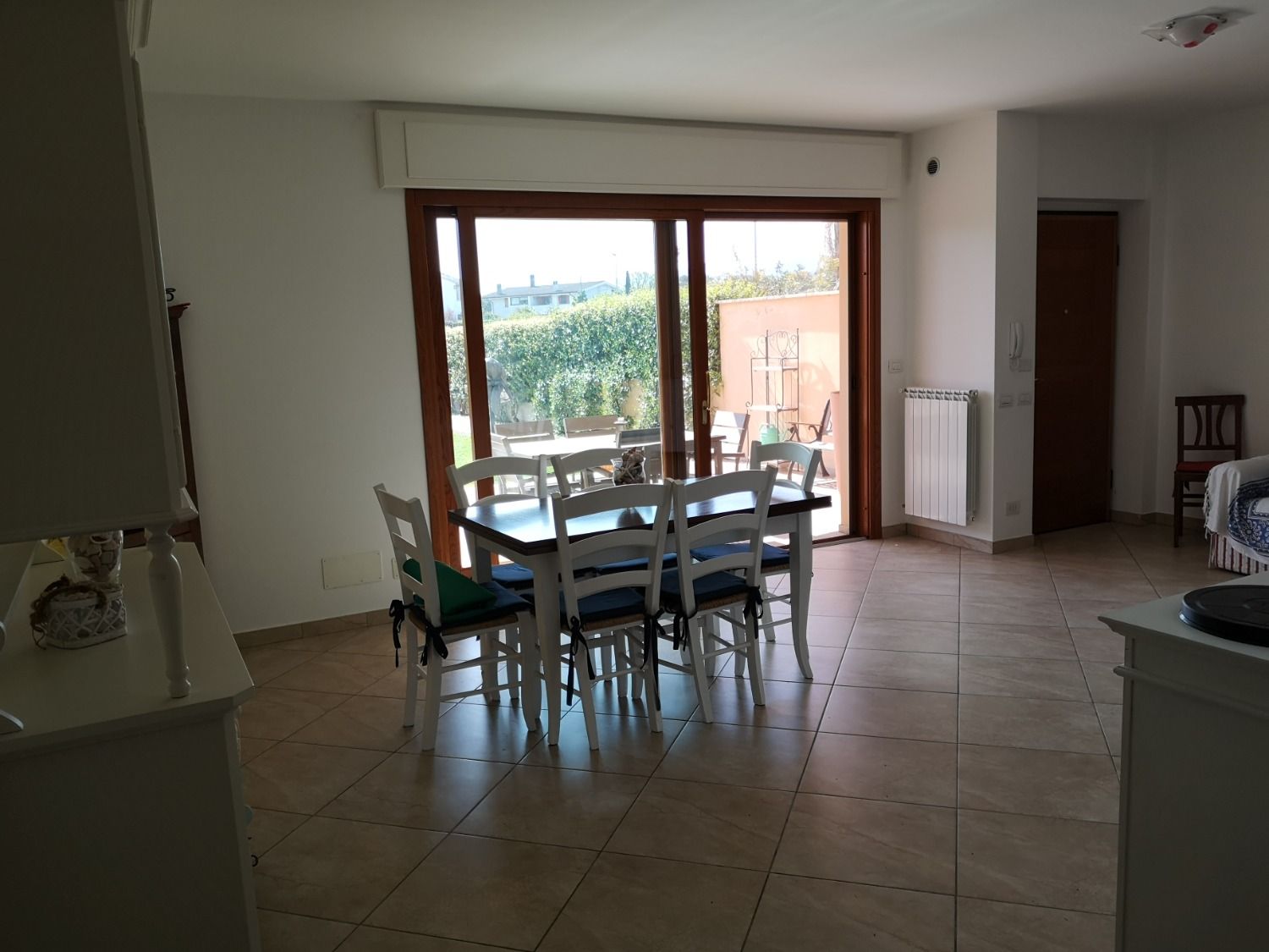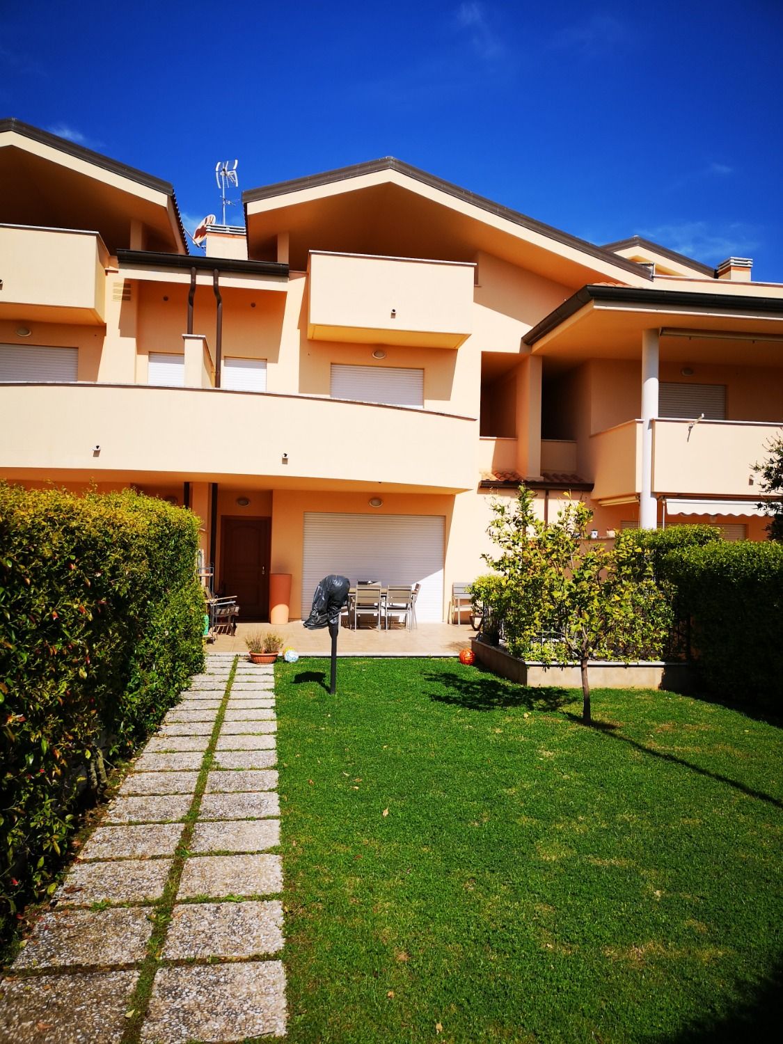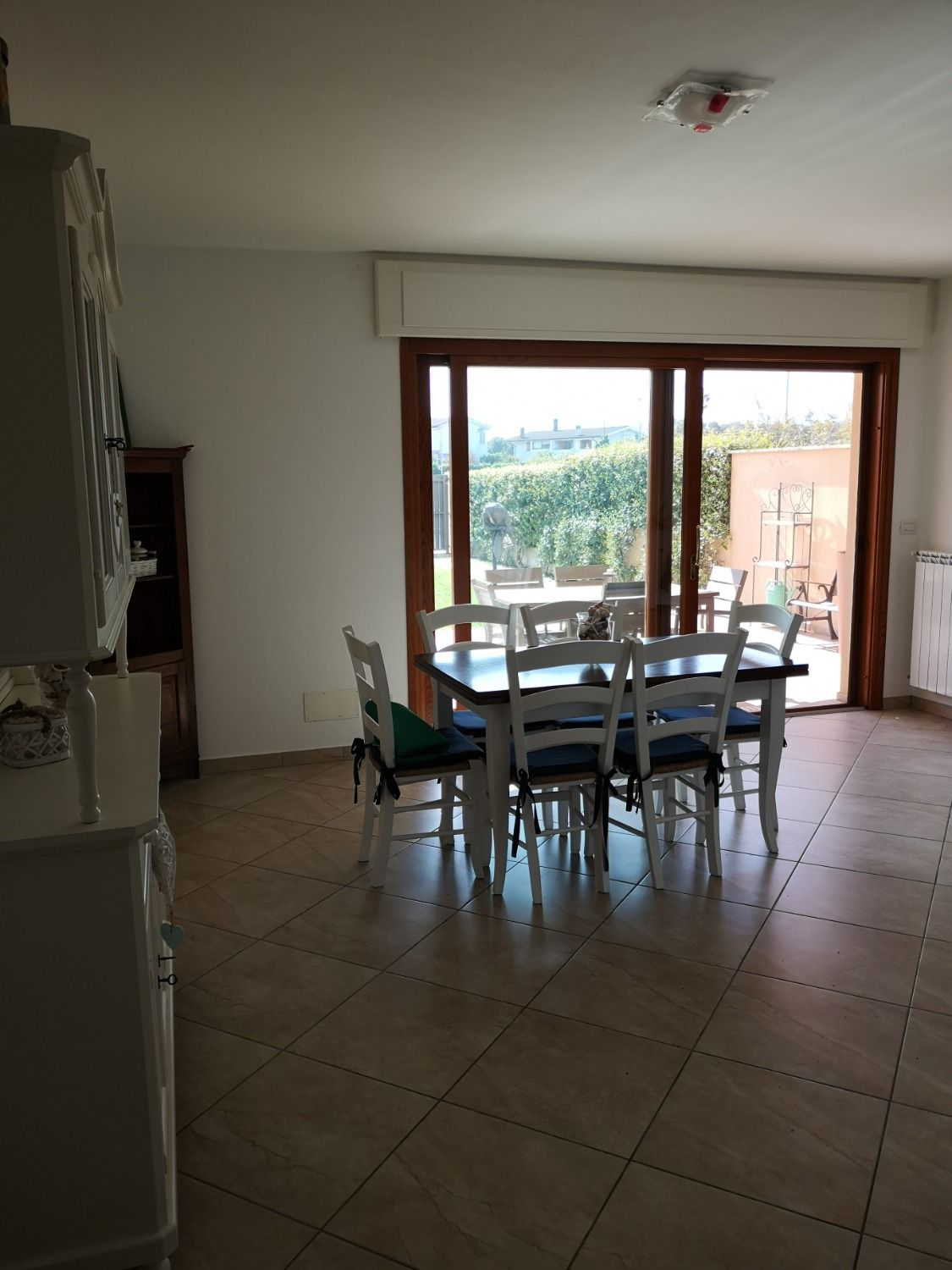 Villa in vendita a Sabaudia. Vendiamo villino a schiera di recente costruzione e di ottima fattura a Sabaudia. Questo villino realizzato da pochi anni, non è stato utilizzato in maniera continua ma solo durante il periodo estivo e sempre dai proprietari. Il villino oltre ad avere un ingresso autonomo ha anche il giardino privato. Il giardino è ben usufruibile anche direttamente dalla veranda frontale alla casa. Si sviluppa come segue: salone con angolo cottura a vista e bagno al piano terra, con accesso diretto alla veranda ed al giardino privato; due camere e bagno al piano primo; altra camera con bagno attiguo al piano secondo e garage al piano interrato.