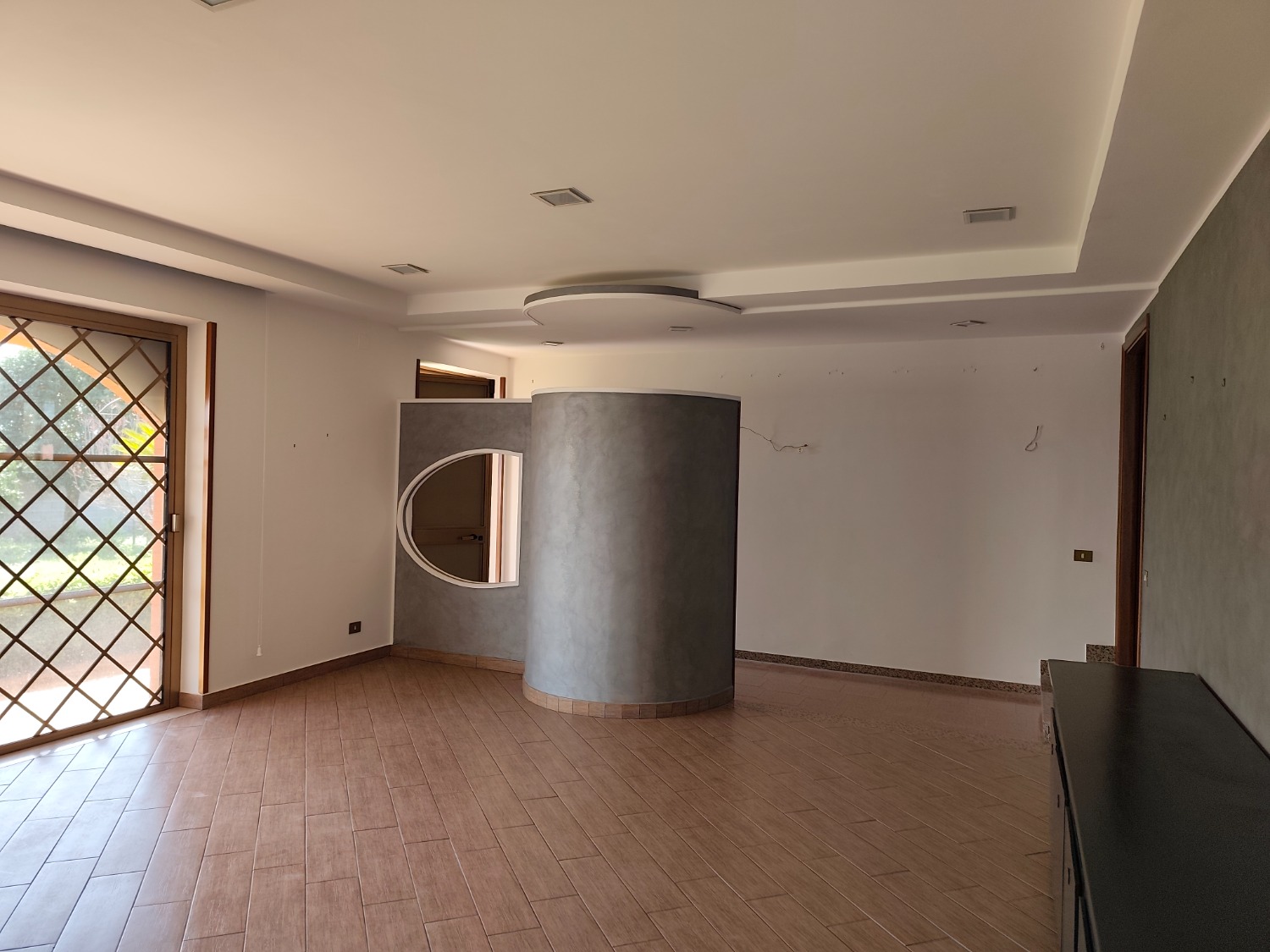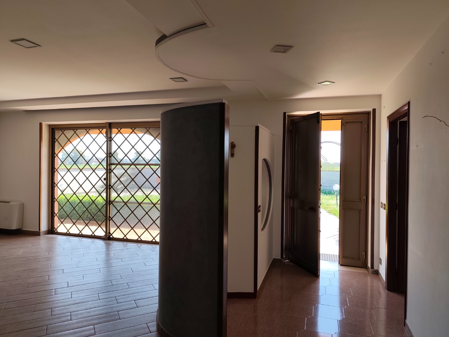 La villa si sviluppa interamente su un unico livello, caratteristica sempre più richiesta per praticità e comfort abitativo. L’ingresso apre su un salone ben distribuito, affiancato da una cucina di ampia metratura, perfetta per la vita quotidiana e per accogliere familiari e amici.